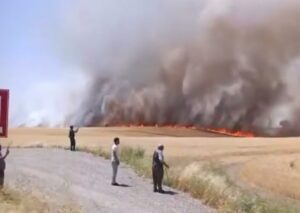 Diyarbakır’ın Kocaköy ilçesinde biçilmemiş bin dönümden fazla buğday ve arpa yangında kül oldu.