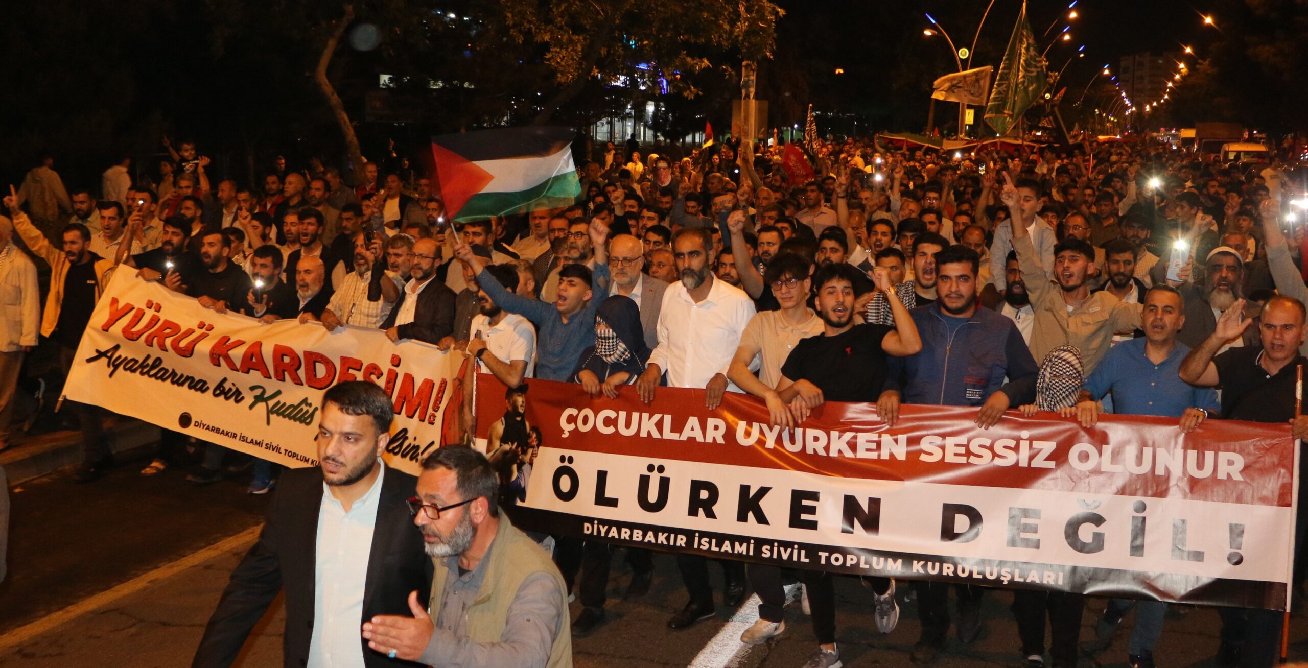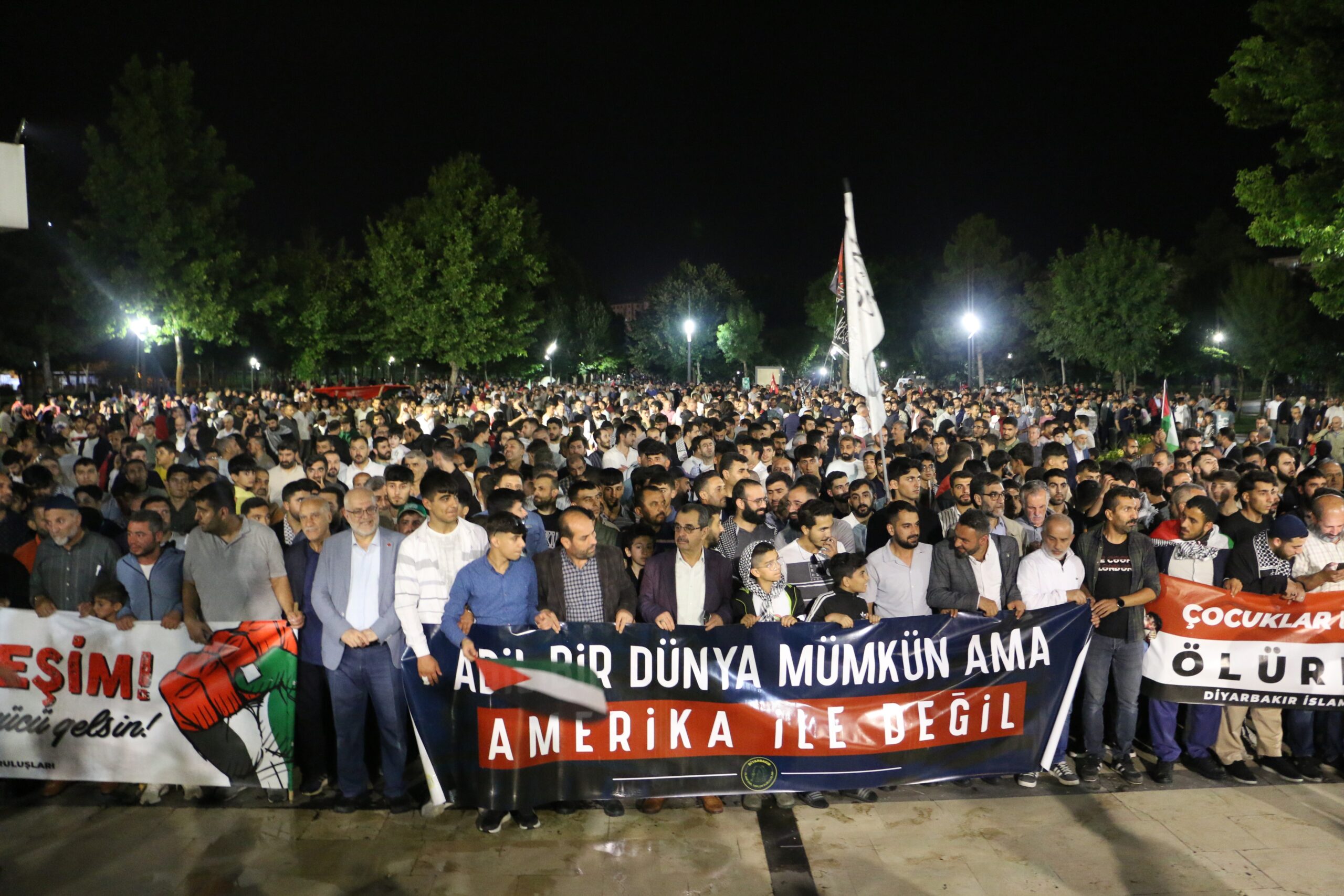 Diyarbakır’da sivil toplum kuruluşları (STK) öncülüğünde bir araya gelen binlerce kişi, İsrail’in Refah’taki saldırılarını protesto etti.